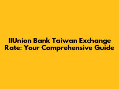 IIUnion Bank Taiwan Exchange Rate: Your Comprehensive Guide