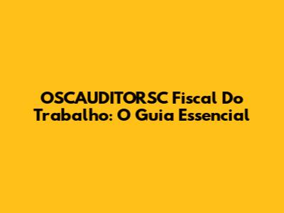 OSCAUDITORSC Fiscal Do Trabalho: O Guia Essencial