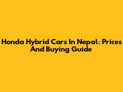 Honda Hybrid Cars In Nepal: Prices And Buying Guide