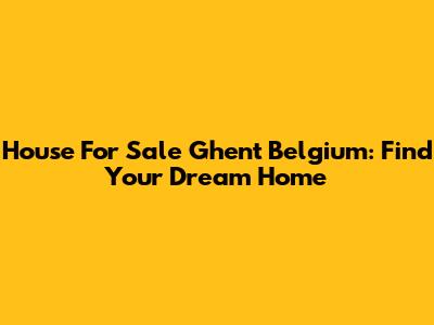 House For Sale Ghent Belgium: Find Your Dream Home